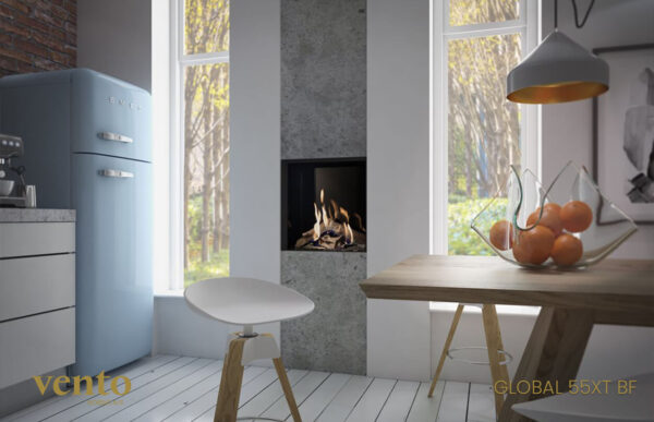 Global 55XT BF är en kompakt och mångsidig gasspis från DRU. Dess eleganta design ramar in härden med realistiska lågor, tack vare Truflame Burner®.